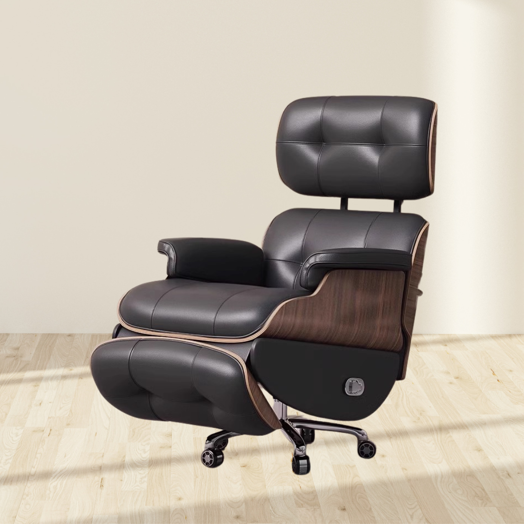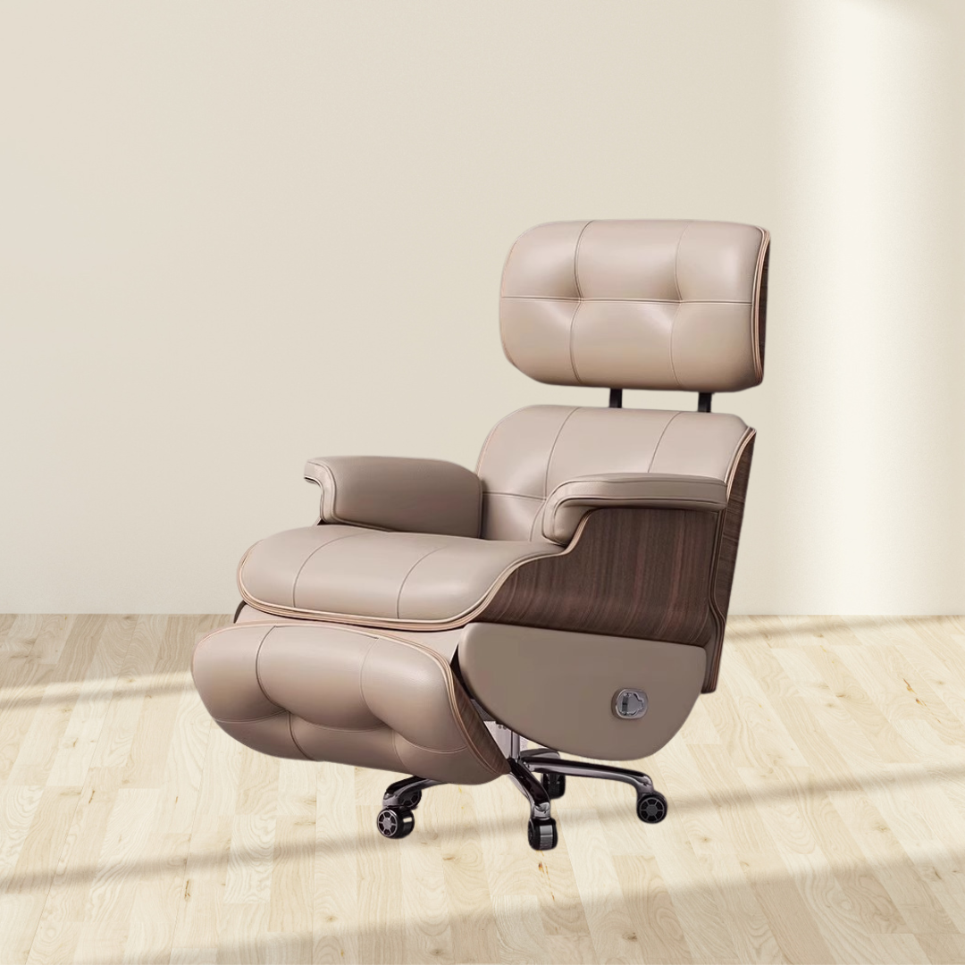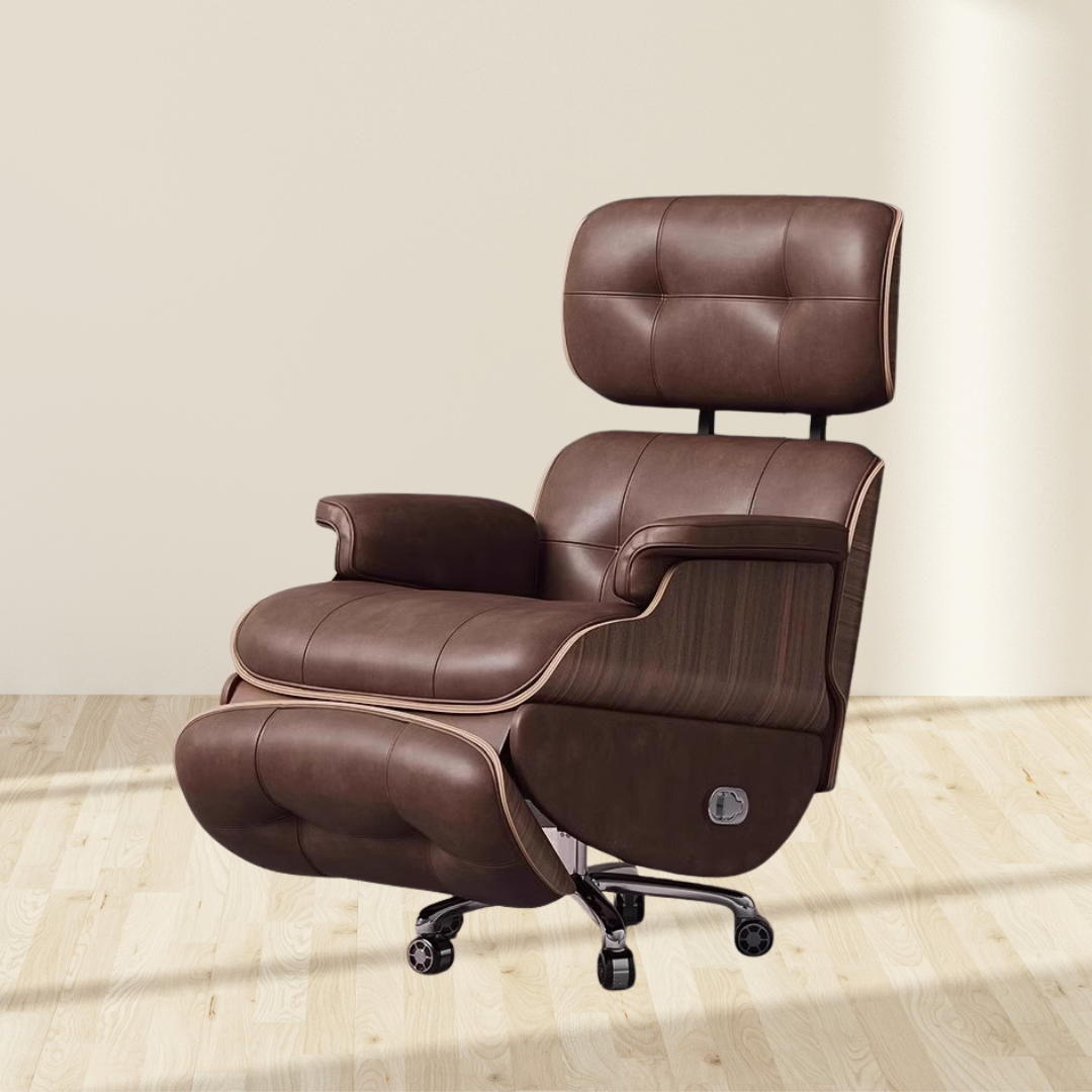 Genießen Sie höchsten Komfort und Flexibilität mit diesem Premium-Bürostuhl. Gefertigt aus hochwertigem Rindsleder, verfügt er über eine separat verstellbare Fußstütze und Rückenlehne, sodass Sie sich frei ausstrecken und Ihre ideale Sitzposition finden können.